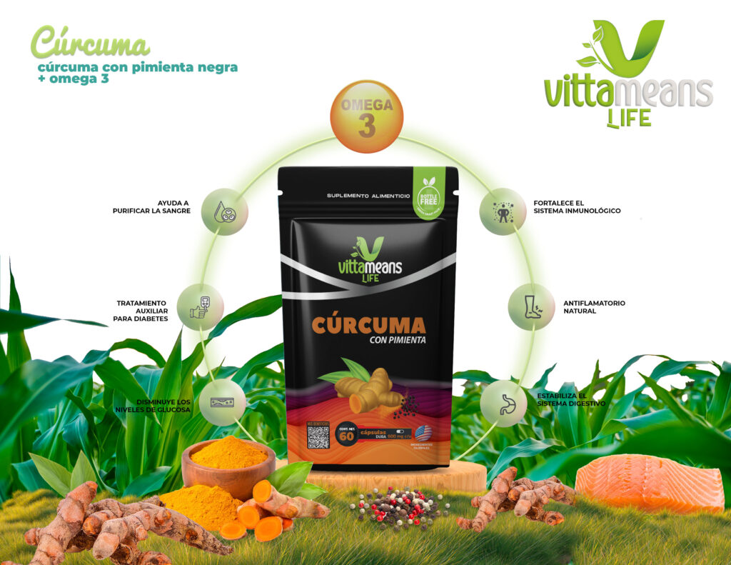 La Curcumina al ser altamente concentrada brinda mayores beneficios y en combinación con la Pimienta Negra + Omega 3 sepotencializan sus propiedades antiinflamatorias.