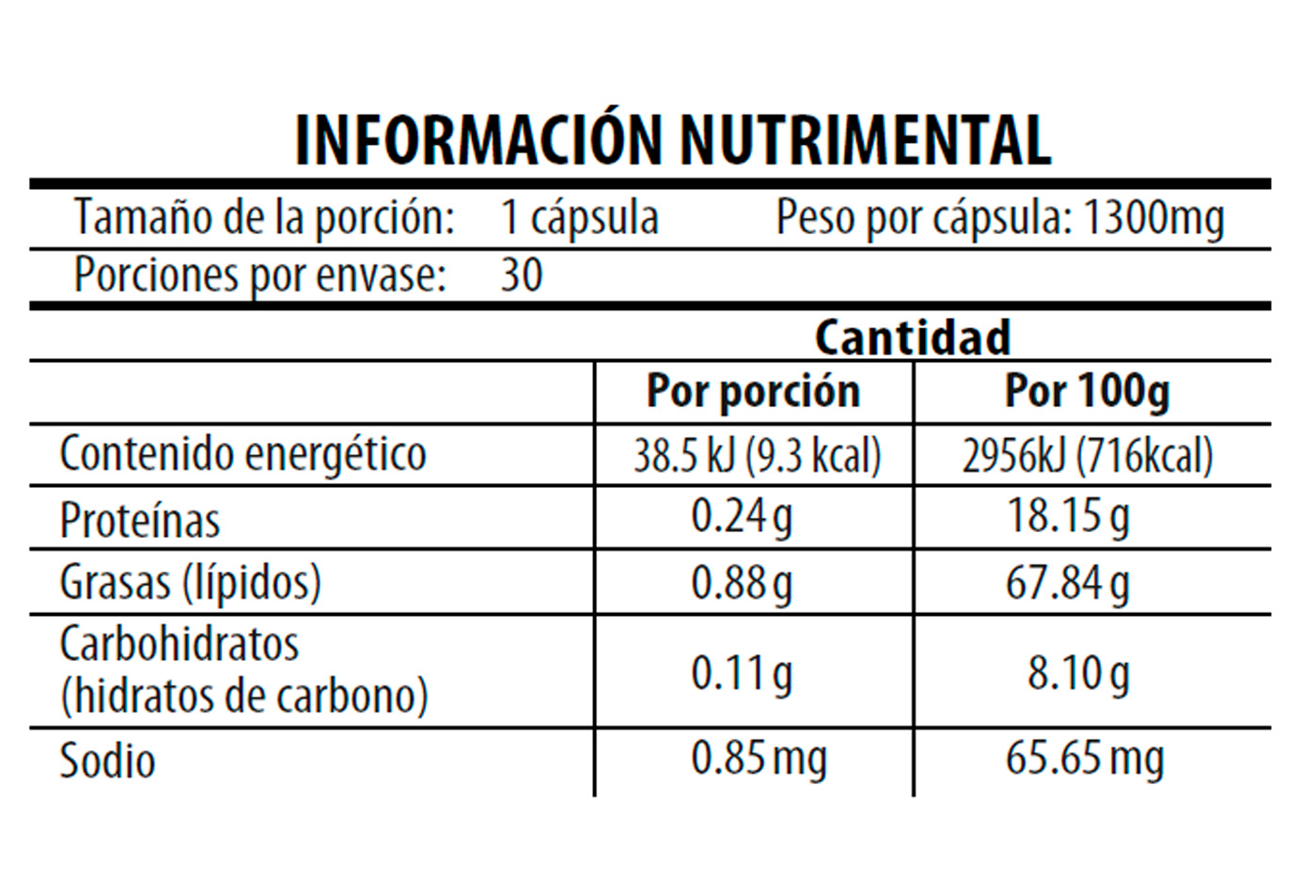 • Tamaño de la porción: 1 cápsulas